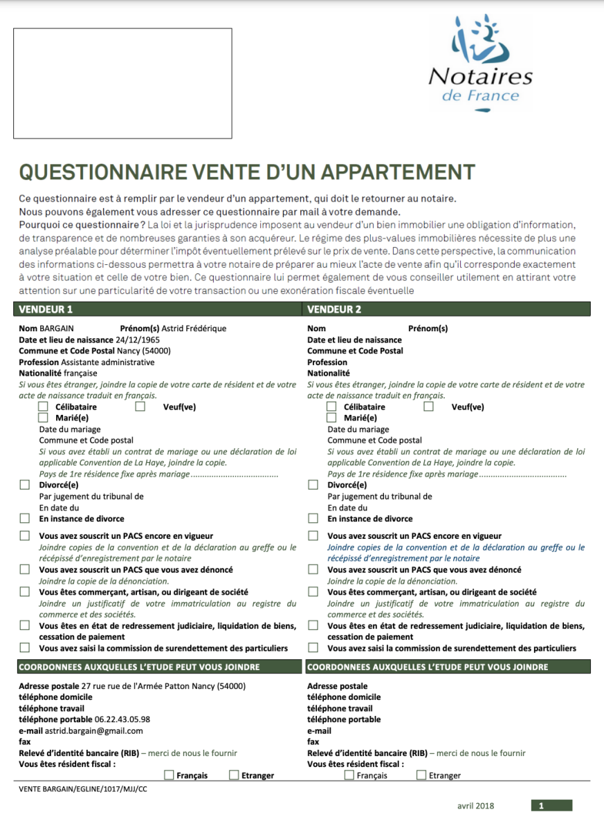 VENDEUR APPARTEMENT